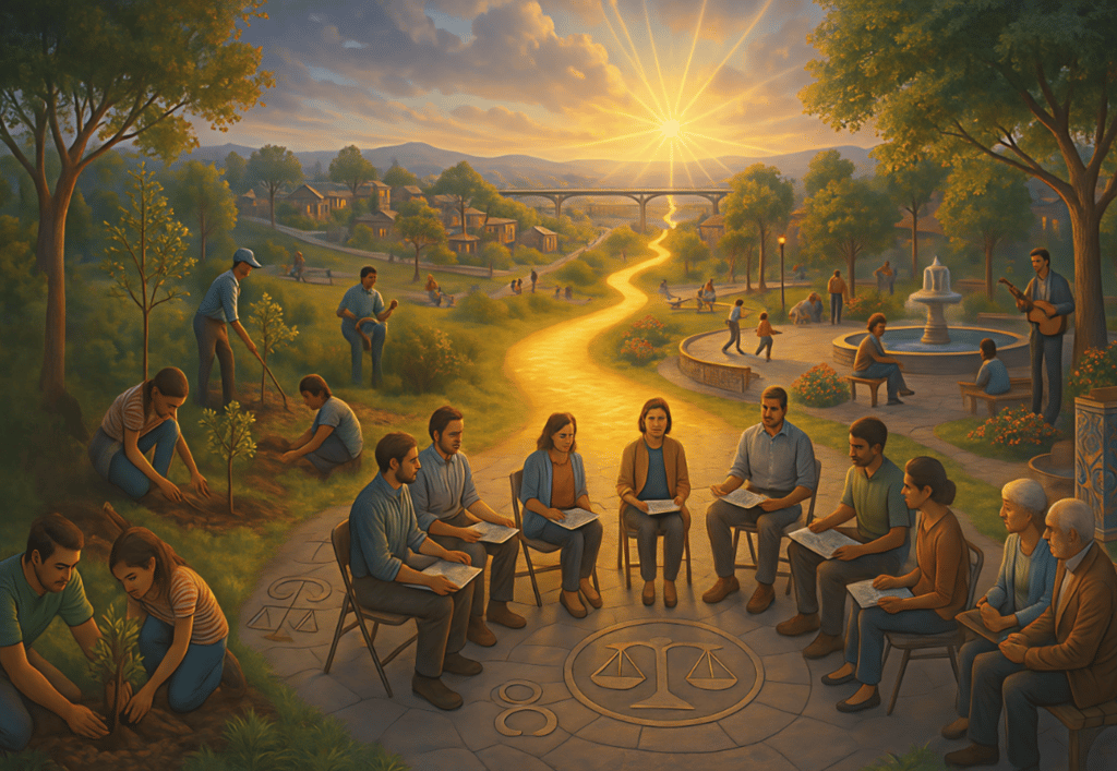 Em tempos de polarização, um convite prático ao reencantamento cívico: Bem (capacidades que libertam), Belo (estética do comum) e Justo (regras claras + deliberação por sorteio). Descubra micro-ações em 7 dias, como organizar um círculo de bairro e medir o que importa — tempo, aprendizagem, saúde e segurança. Política como obra de arte coletiva que cuida do que é de todos.